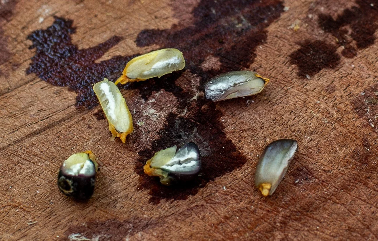 The class began at sunrise with an introduction to the native maize varieties the restaurant uses. Handfuls of kernels in deep reds, pale yellows, blues, and almost-black purples were laid out in front of us. As we handled them, the team talked us through the extraordinary diversity of Mexican heirloom corn and Criollo’s effort to protect it.
