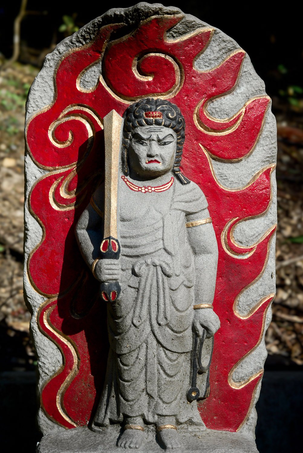 Yakushi Nyorai (Healing Buddha) statue – Enshrined in the Kondō (Main Hall), this is a significant Heian-period artefact. Mandala paintings – Several esoteric Shingon Buddhist mandalas, including the Diamond World and Womb World mandalas, are preserved in the temple's collection. Documents and scrolls – Daigoji houses over 100,000 cultural assets, including sutras, temple records, and paintings, many of which are designated as National Treasures. Wall paintings and folding screens, created by artists from the Kano school, are located in the Sanbōin, the sub-temple where Toyotomi Hideyoshi hosted his famous cherry blossom-viewing party in 1598. Sculptures of Buddhist deities – A collection from the Heian and Kamakura periods, including Fudō Myōō and other guardian deities.