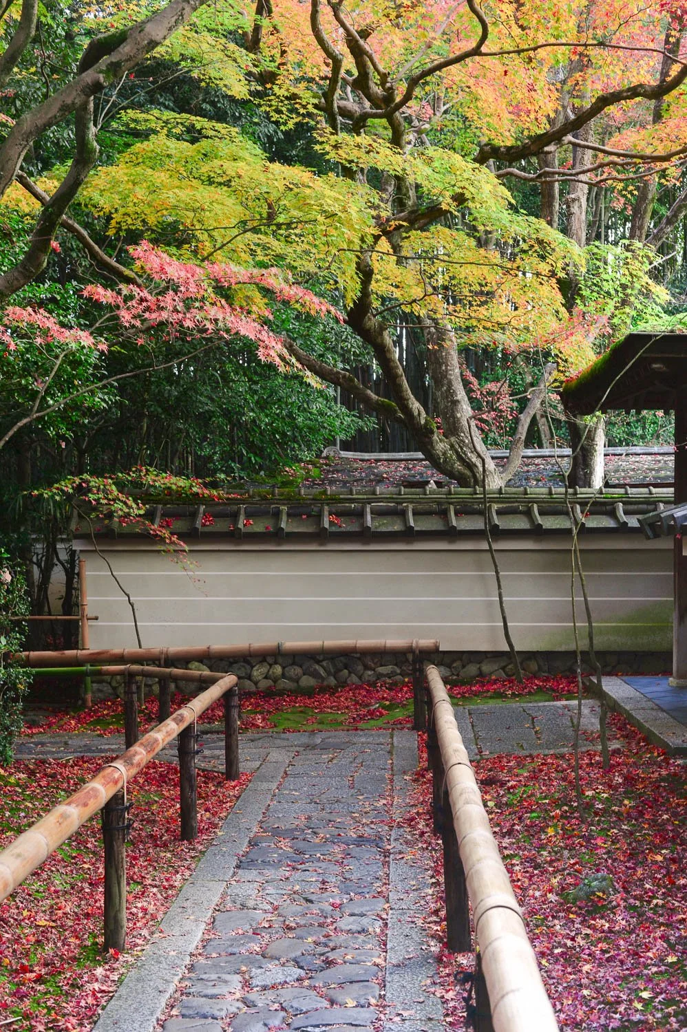 6. End at Kōtō-in (高桐院) – Founded in 1601 by Hosokawa Tadaoki, the path leading to the main hall is particularly stunning. Inside, tatami rooms open onto serene moss gardens that are lined with maple leaves in Autumn, showcasing vivid shades of red and gold.