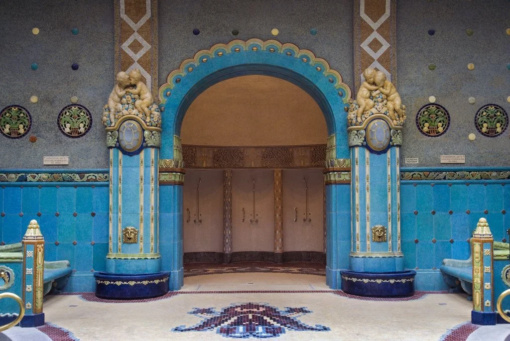 Among Budapest’s thermal baths, the Gellért Baths hold a unique place in the imagination. This is the bath you recognise before you arrive. Designed by architects Artúr Sebestyén, Ármin Hegedűs, and Izidor Sterk, and built between 1912 and 1918, Gellért stands as a lavish expression of Hungarian Art Nouveau Secessionist style, with Zsolnay mosaics and stained glass, vaulted ceilings, and ornamented columns that feel closer to theatre than infrastructure.