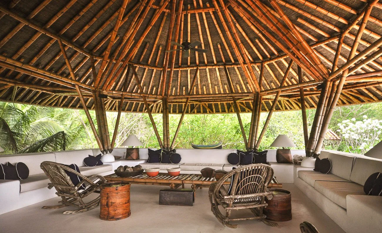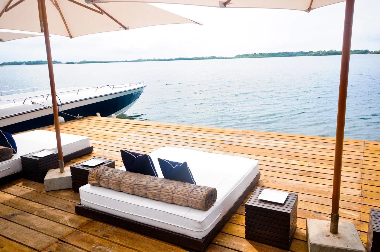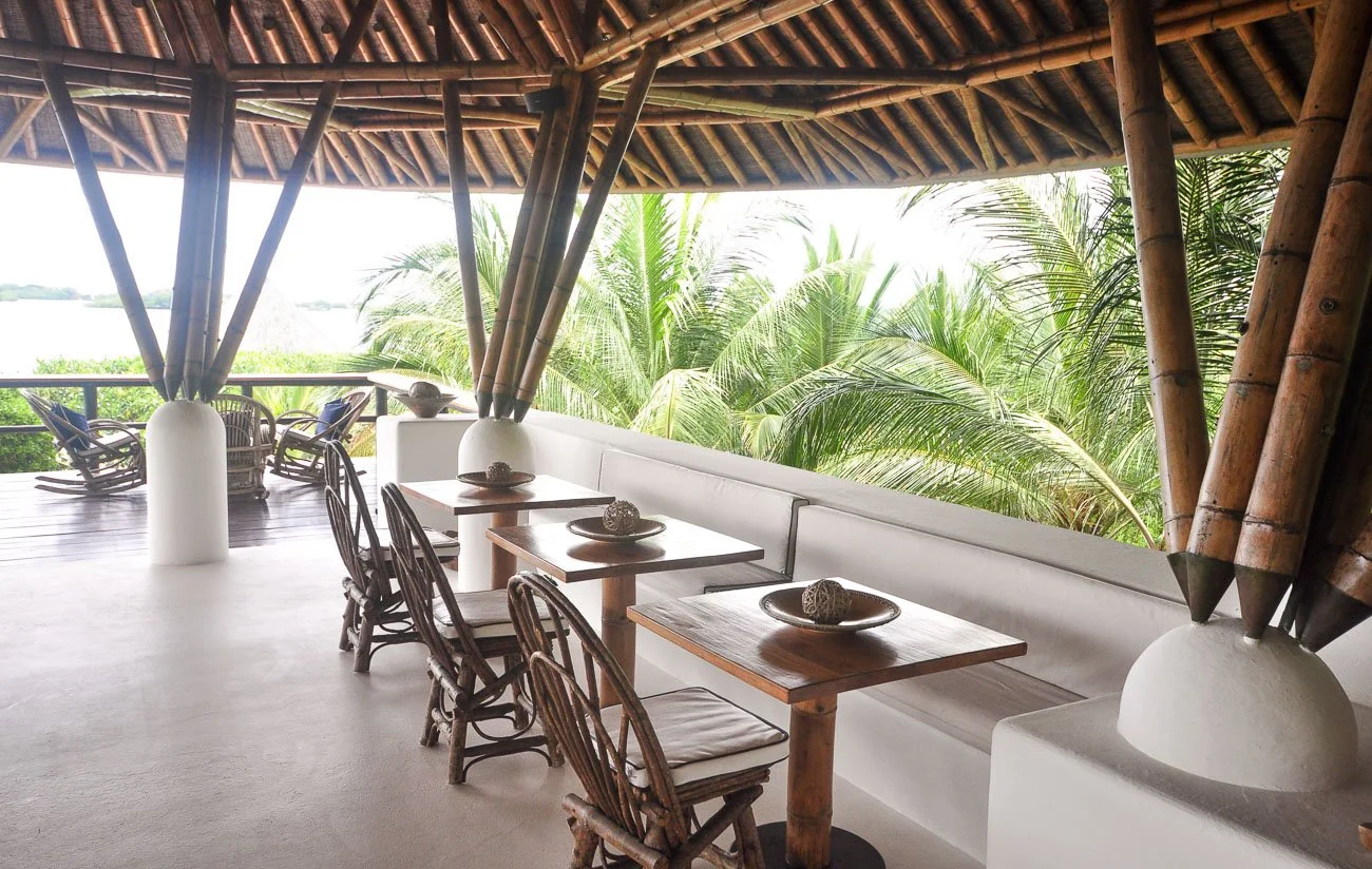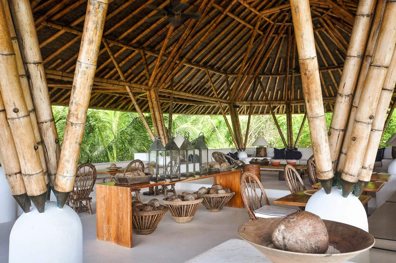 The dining room itself is beautifully constructed from bamboo and woven palm. It reflects Pinto’s understated tropical chic style. Yet it is the act of dining barefoot in a robe, overlooking nothing but water and sky, that defines the experience.