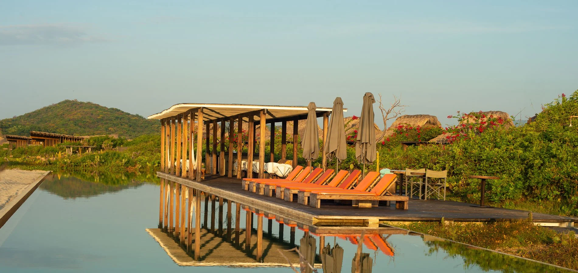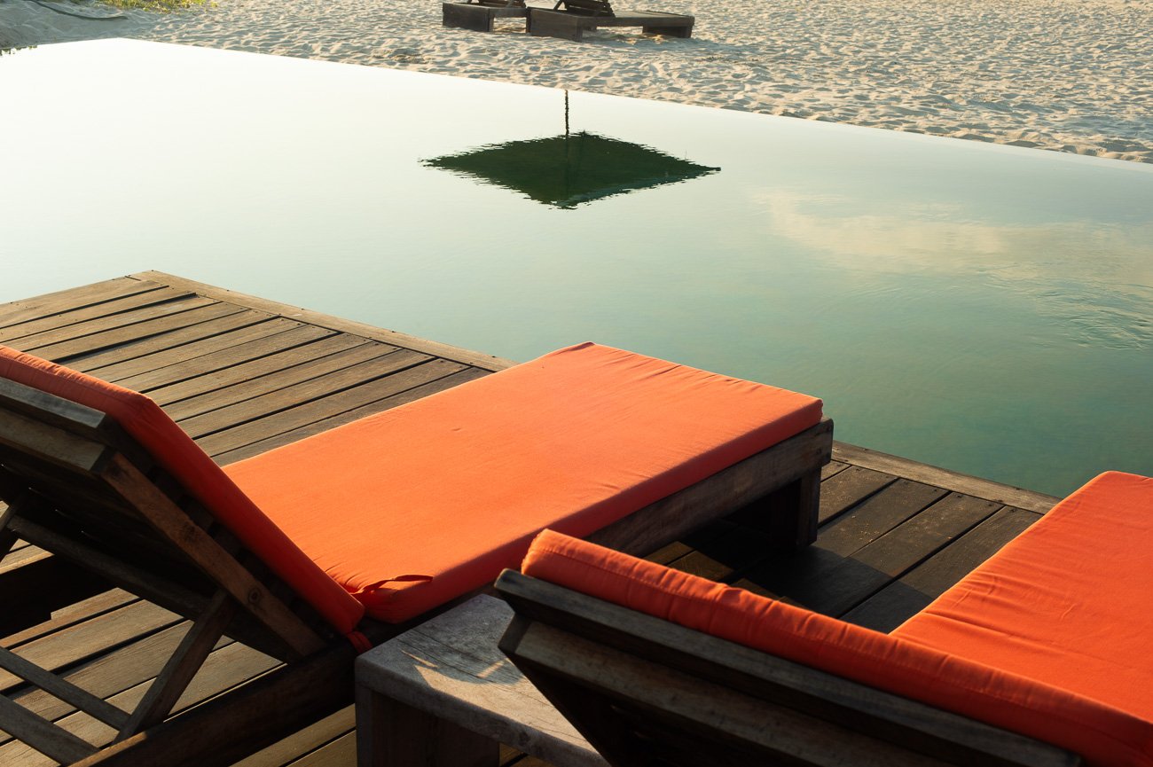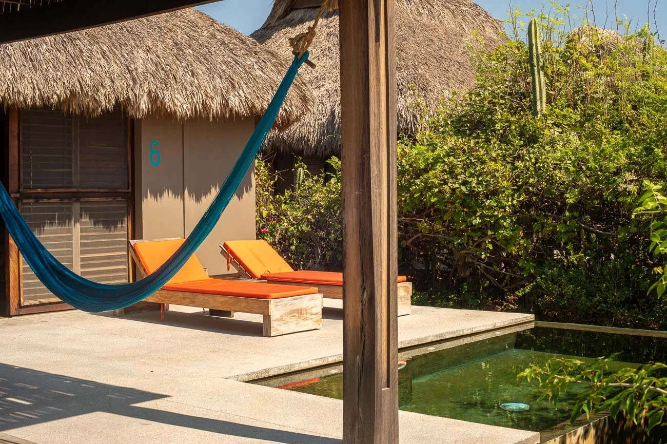 Each bungalow is spacious and utterly secluded. Inside, the design is clean and functional; outside, each unit opens onto its own well-sized plunge pool, hammocks, and a shaded lounging area. Sliding doors slide wide open, allowing air and the scents of warm coastal vegetation to flow freely throughout the space. It’s everything you desire from a beach retreat.
