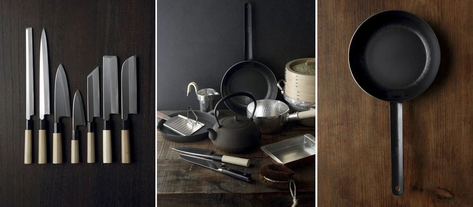 On the main street in Kappabashi’s Kitchen Town, just a short walk from Asakusa, Kappabashi is a must-visit for any kitchen proffesional or anyone who loves cooking. It is also very close to the iconic Sensō-ji Temple and its surrounding izakaya alleys. Kama Asa Shoten has two stores side by side, separated by a narrow street. The corner shop sells general kitchenware, while the one next door specialises in knives and traditional tools, such as sharkskin wasabi graters, kama and kamado cast iron, kezuri-ki (dried bonito plane), yuki-hira and yattoko saucepans, as well as Konro grills and more.