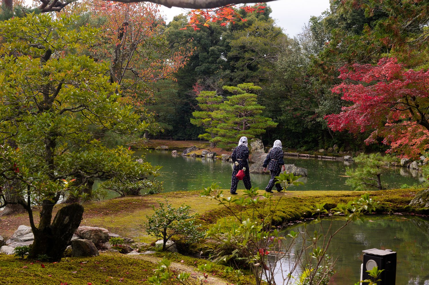 The garden style is known as kaiyū-shiki-teien, which translates to a landscape or promenade garden. Designed for a wander in a choreographed clockwise manner, leading to the informal nomenclature of go-round style. Two main techniques are employed.