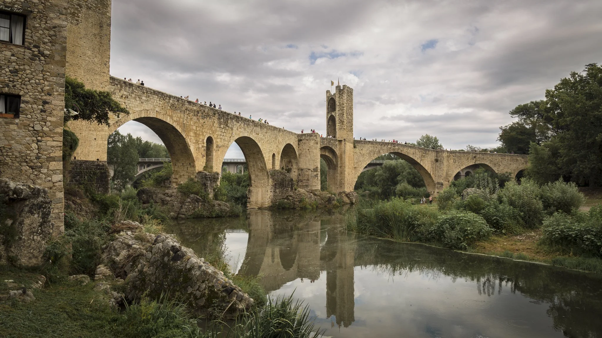 Further afield, Besalú, one of the region’s most iconic scenes. Its 12th-century Romanesque bridge arcs confidently over the Fluvià River, leading into a town known for its restored Miqvé, or Jewish ritual bath, one of the few remaining in Europe.