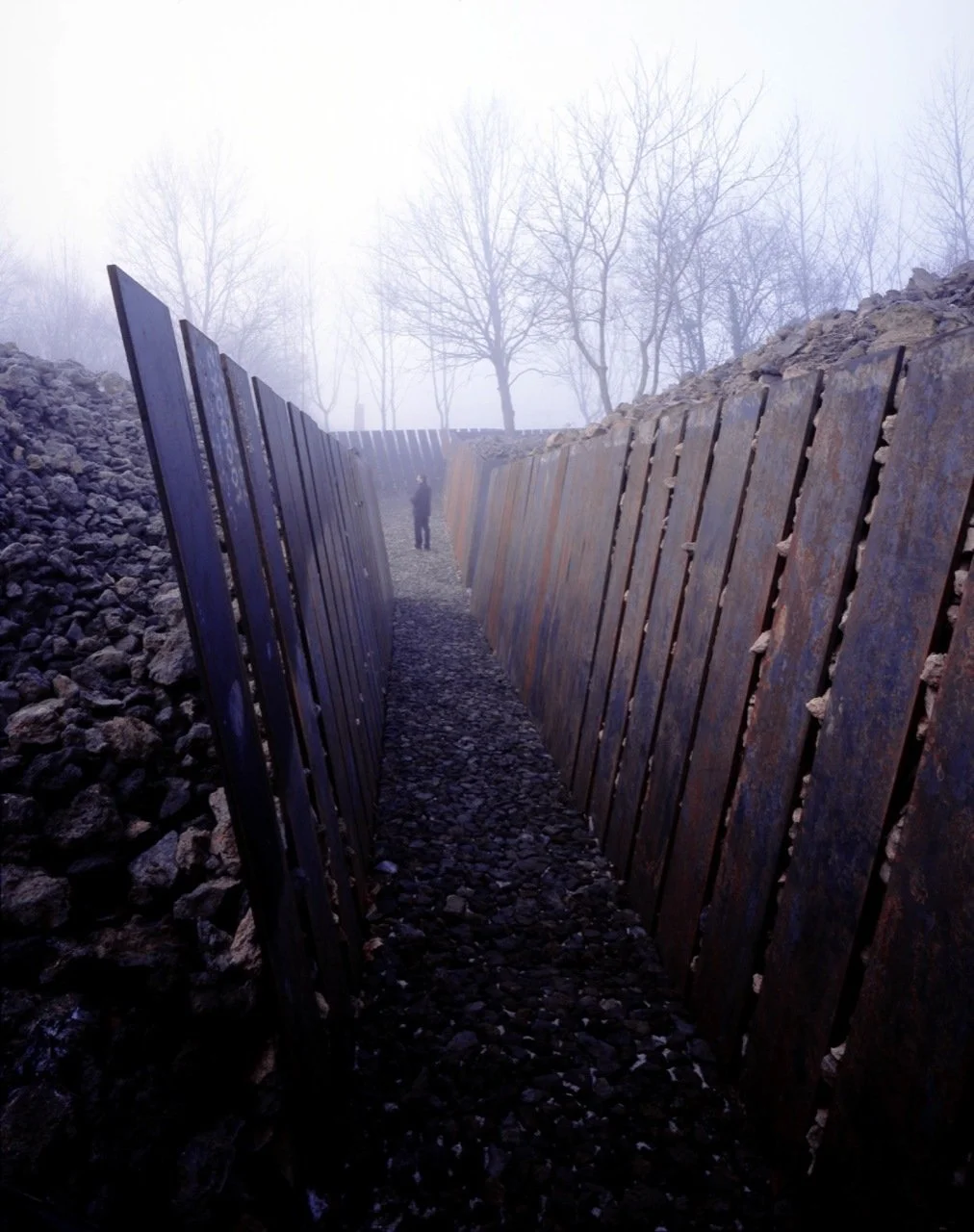 Architecture and landscape blend seamlessly at Parc de Pedra Tosca, a striking intervention by RCR Arquitectes. Here, volcanic stone mounds are subtly arranged with rusted steel plates, forming a contemplative pathway that threads through the lava fields toward the Les Preses Volcano Park.