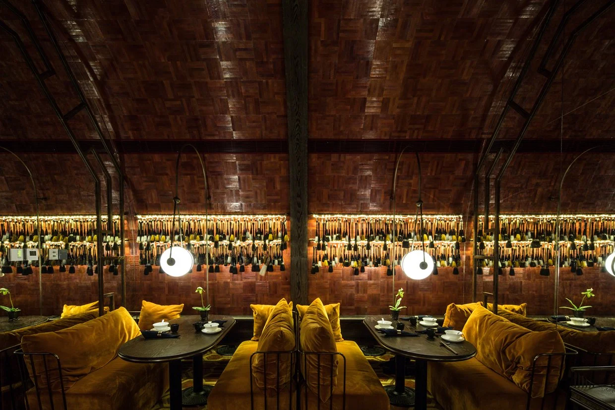 As you enter the Chartered Bank building, you may feel either comfortable in the monolithic embrace of the cash center or a bit annoyed at the excess money spent on the unappealing marble decor. You descend further into the depths of the building, passing mirrors and columns, and you feel yourself drifting into the netherworlds where the real jewels are stored. Mott 32, with its extraordinary interior designed by Joice Wang (winner of the 2014 Restaurant Interior Design Award), is a true gem.