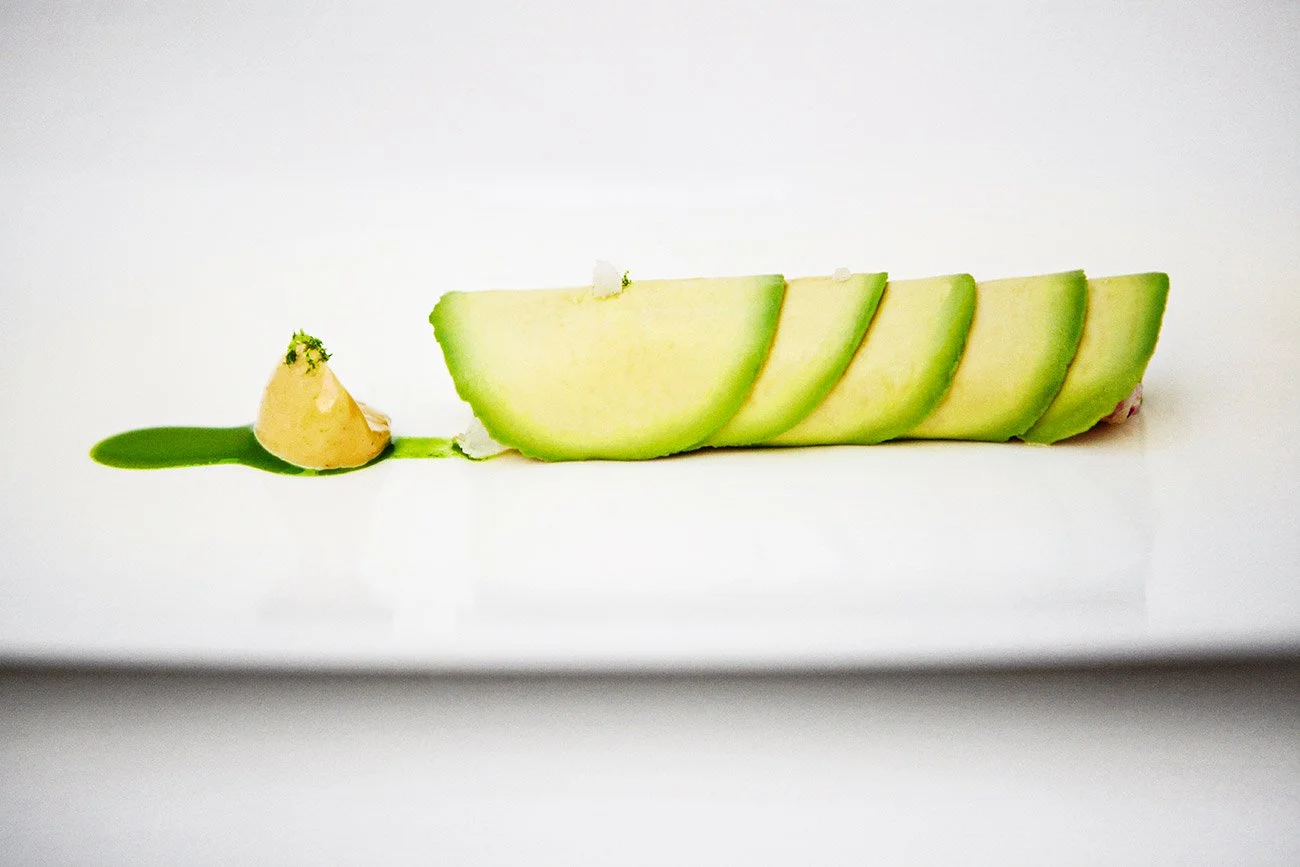 The avocado flauta replaces the traditional tortilla with thin sheets of avocado, wrapped around shrimp and octopus, finished with chipotle mayonnaise atop a bright cilantro emulsion and a crisp element that added welcome contrast.