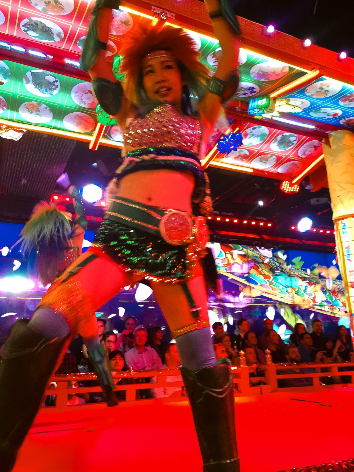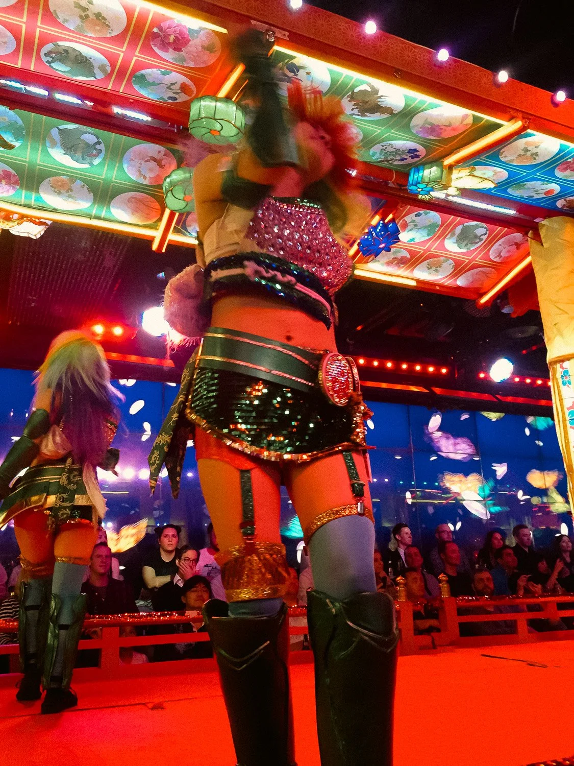"Restaurant" is a bit of a misnomer; this isn’t about food (though you can grab a bento, sushi, or just stick to popcorn and beer). What you’re really here for is the show: a 90-minute Sensory Overload Spectacular, an explosion of neon, thundering taiko drums, laser battles, sequined dancers and giant robot-riding chaos at its finest.